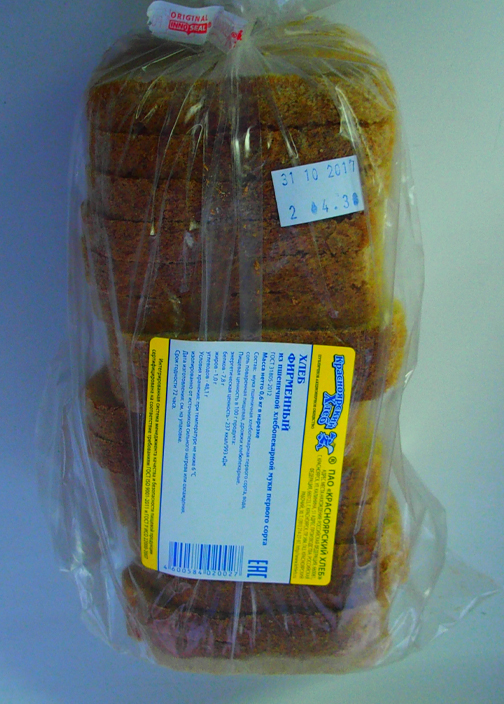 Характеристика товара: Хлеб фирменный из пшеничной хлебопекарной муки 1 сорта, нарезка т.м. «Красноярский хлеб»