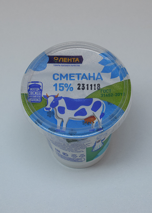 Характеристика товара: Сметана м.д.ж. 15,0% т/м «Лента»