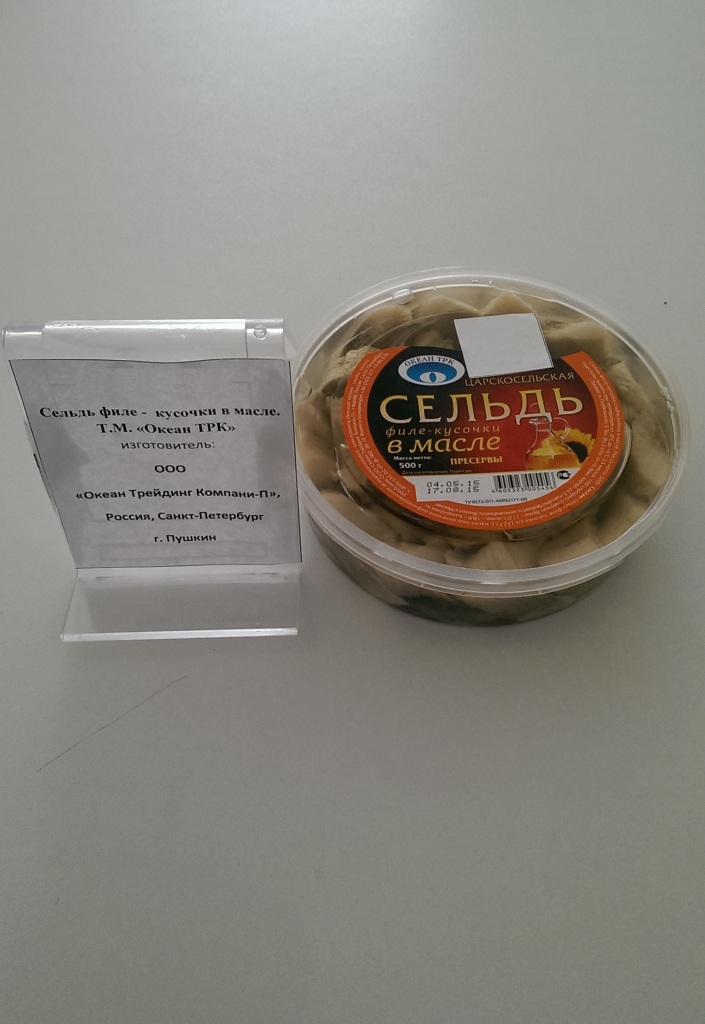 Характеристика товара: Сельдь филе- кусочки в масле. Т/М «Океан ТРК»