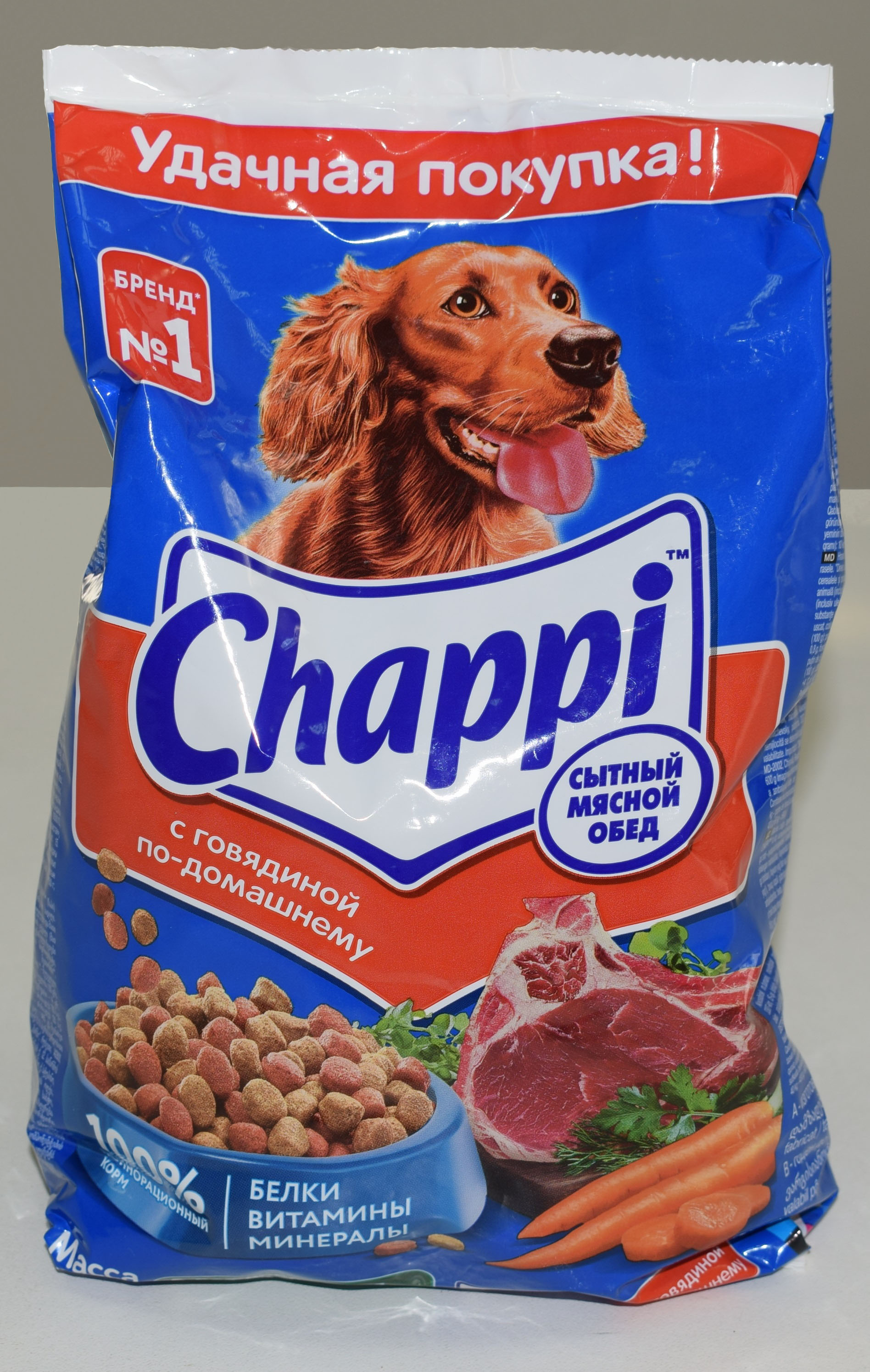 Характеристика товара: т/м «CHAPPI» - Полнорационный сухой корм для взрослых собак всех пород. «Сытный мясной обед. С говядиной по – домашнему».