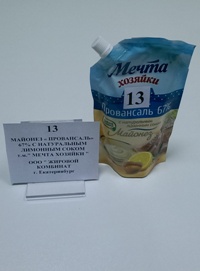 Характеристика товара: Согласно информации на потребительской упаковке м.д. жира 67%, с натуральным лимонным соком. Майонез упакован в потребительскую тару типа «дойпак».