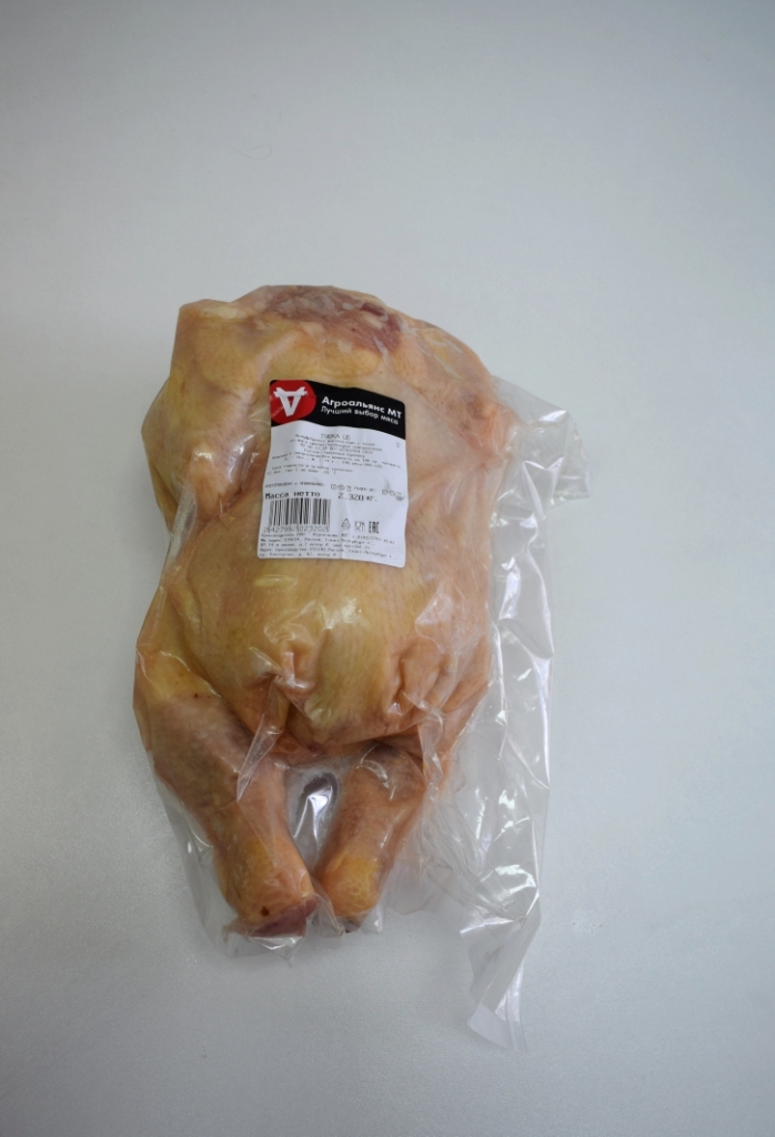 Характеристика товара: Тушка цыпленка-бройлера. Полуфабрикат мясокостный с кожей из мяса цыплят-бройлеров замороженный т.м. «Агроальянс МТ»