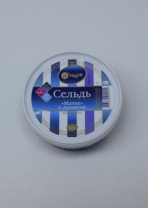 Характеристика товара: Пресервы рыбные. Сельдь «Матье» с дымком филе-кусочки т/м «а,море»