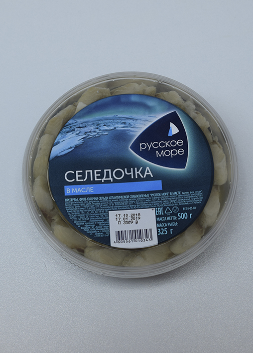 Характеристика товара: Пресервы. Филе кусочки сельди атланти ческой слабо-соленые «Русское море» в масле. Продукт охлажденный. т/м «Русское море»