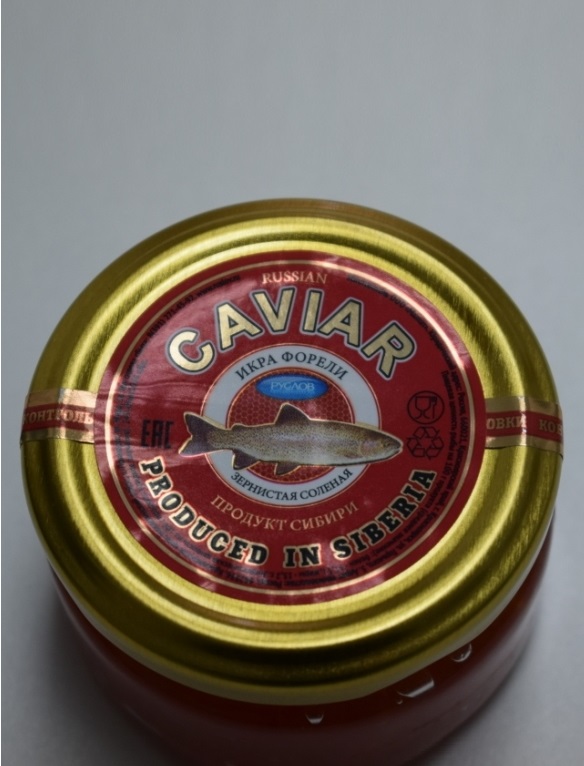 Характеристика товара: Икра форели зернистая соленая 1 сорт продукт аквакультуры «Новый забой». т\м «Руслов»