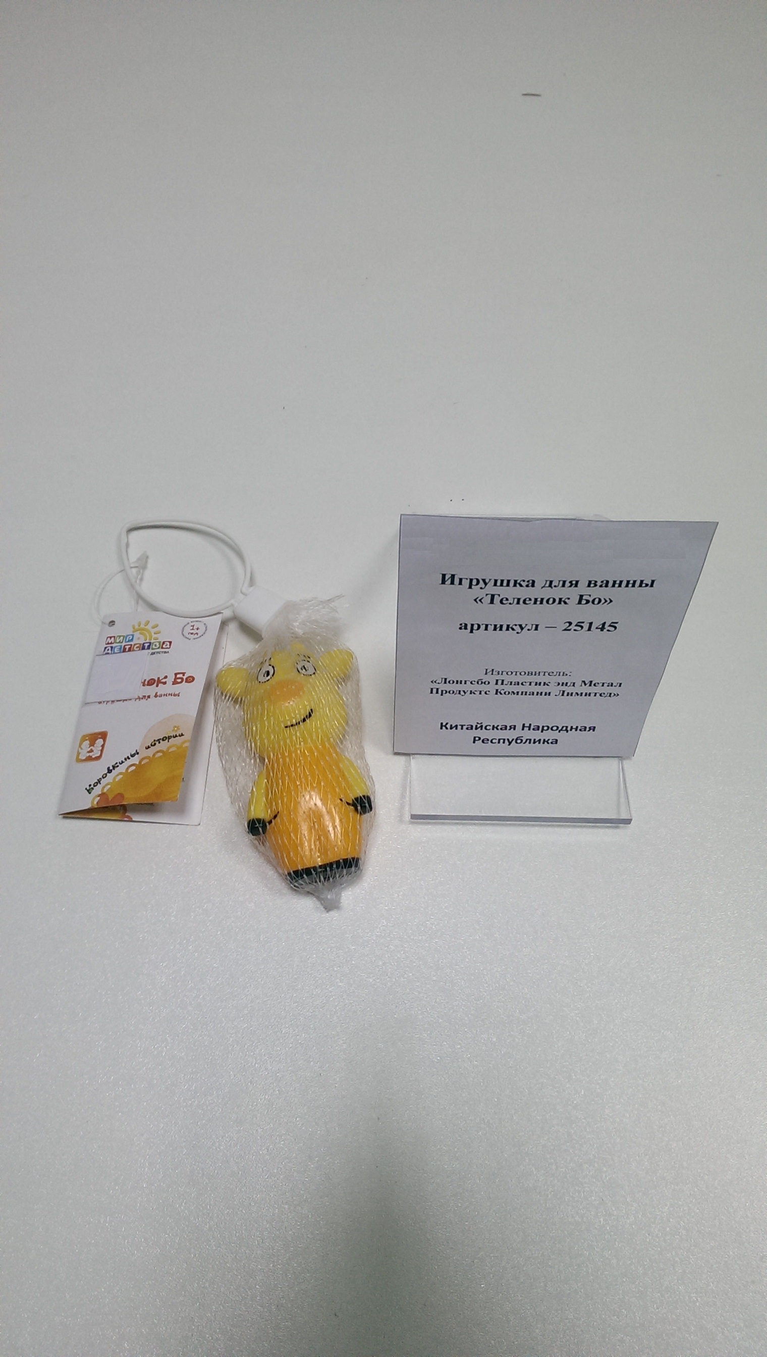 Характеристика товара: Игрушка для ванны «Теленок Бо», артикул – 25145; товарный знак «Мир детства»; возрастная адресованность - от 1 года