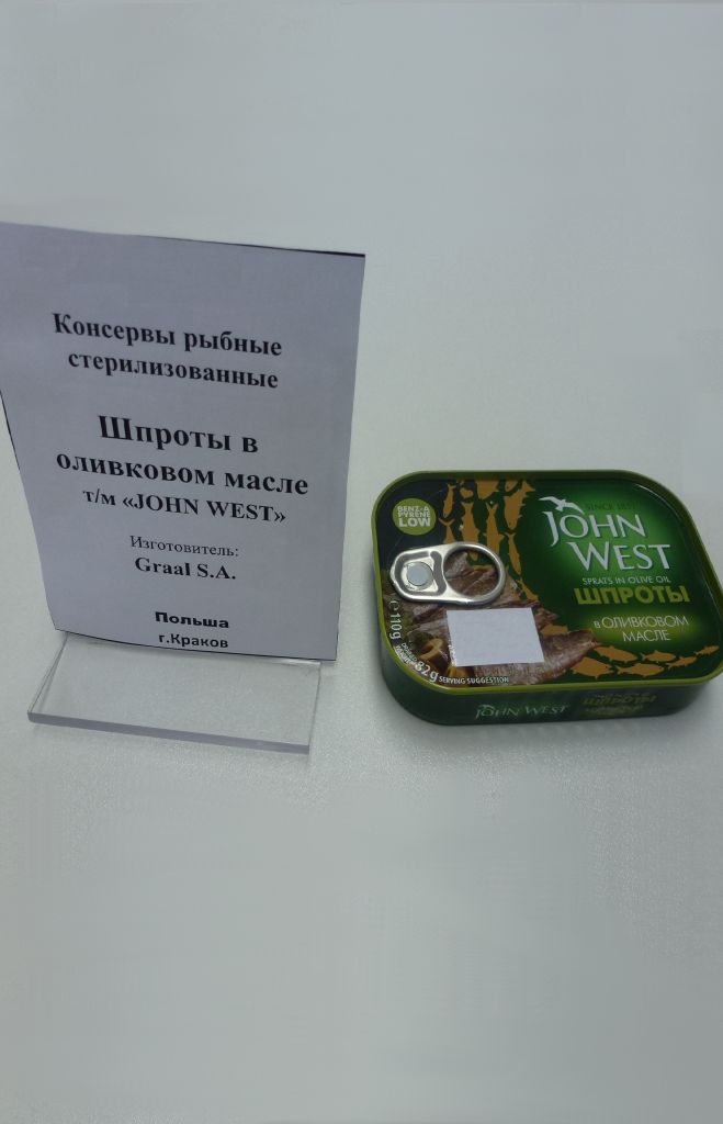 Описание товара:Консервы рыбные стерилизованные «Шпроты в оливковом масле». т/м «JOHN WEST»