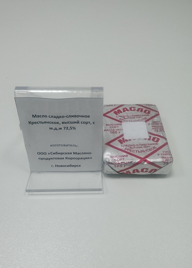 Масло сливочное Крестьянское, мдж 72,5%, ООО «Сибирская Масляно-продуктовая Корпорация» изготовлено из пастеризованных сливок