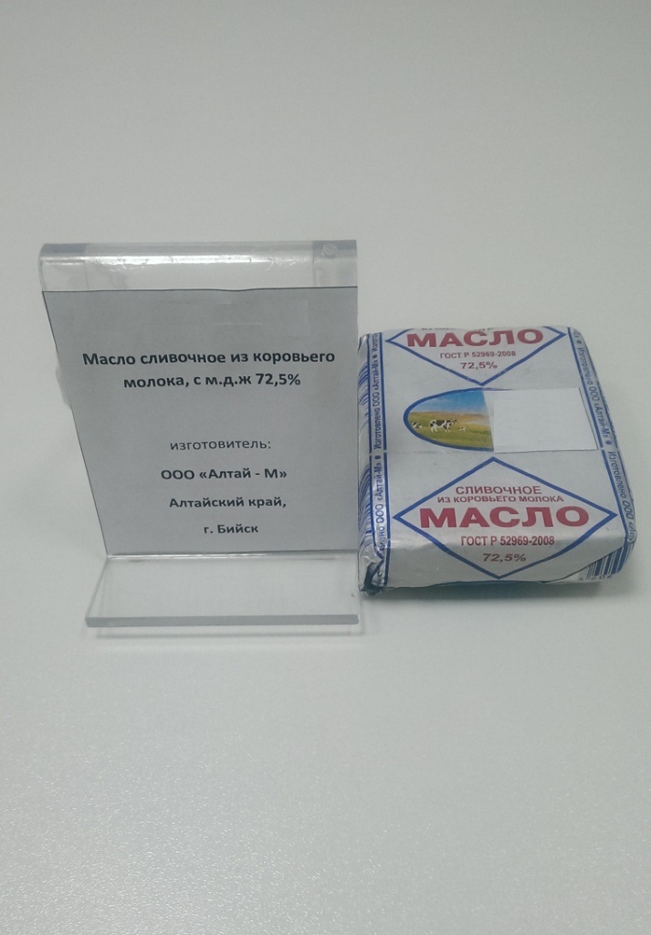 Масло сливочное, мдж 72,5% ООО «Алтай-М»