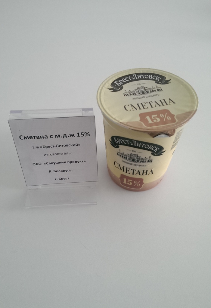 Описание товара:Сметана м.д.ж.15% т/м «Брест- Литовский»
