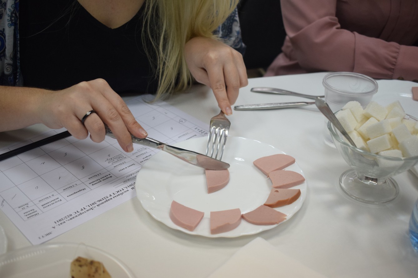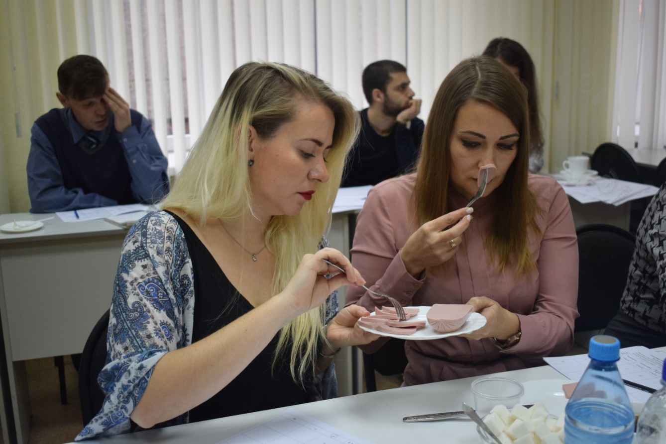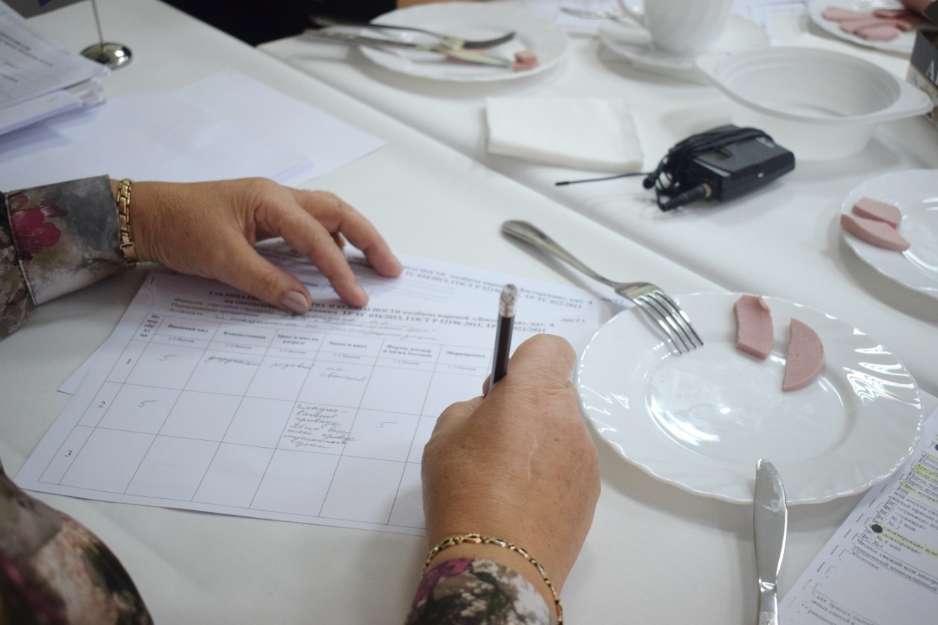 Затем колбасу на вкус, цвет, консистенцию и запах оценивали члены дегустационной комиссии в составе экспертов и специалистов Красноярского ЦСМ, краевых министерств, законодательного собрания, контрольных органов, представители предприятий – производителей колбасы и торговых сетей. Кроме того, впервые к оценке колбасных изделий привлекались и будущие товароведы – студенты Торгово-экономического института Сибирского Федерального университета.