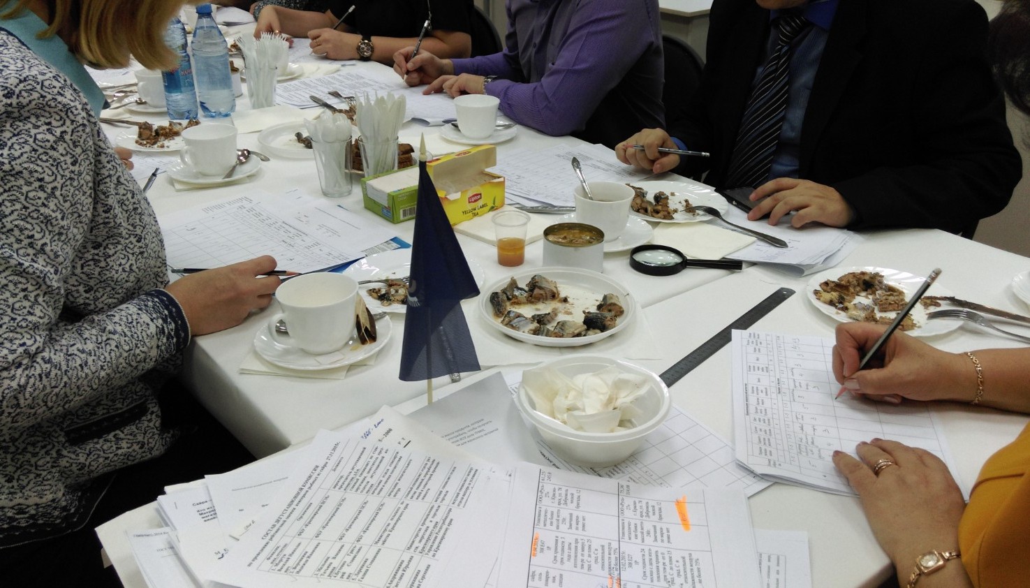 Сегодня качество рыбы по органолептическим показателям с учетом данных лаборатории Центра и института биофизики СО РАН оценивали эксперты – члены дегустационной комиссии. В ее состав помимо специалистов Красноярского ЦСМ вошли представители двух министерств края – сельского хозяйства и промышленности и торговли, Роспотребнадзора, органа по сертификации, вузов и торговых сетей города, Института биофизики СО РАН и экологических организаций края. Органолептическая оценка включала 11 показателей, в том числе вкус, запах, порядок укладки рыбы, прозрачность бульона. Максимальный балл для сайры натуральной составлял 58, а для сайры натуральной с добавлением масла – 53.